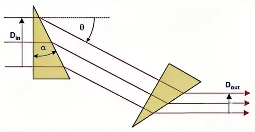 Home / Custom / Optical Components / Optical Prism / Anamorphic Prism Anamorphic prism is a pair of prisms which is usually used for reshaping the profile of a laser beam. For example, the elliptical beam from a laser diode can be transformed into a beam with circular cross-section, as is needed for many applications, by using an optical prism pair as a beam expander for only one direction (e.g., the horizontal one). Of course, one can also just modify the ellipticity, or convert a circular beam into an elliptical one.