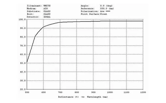 The optical mirror coated with metal (Au, Al, or Ag) over coated with silicon monoxide(SiO2). Metallic coatings have low peak reflectance, mechanical durability and damage threshold, but they have extremely broadband and low cost. They are insensitivity to angle of incident light and polarization.